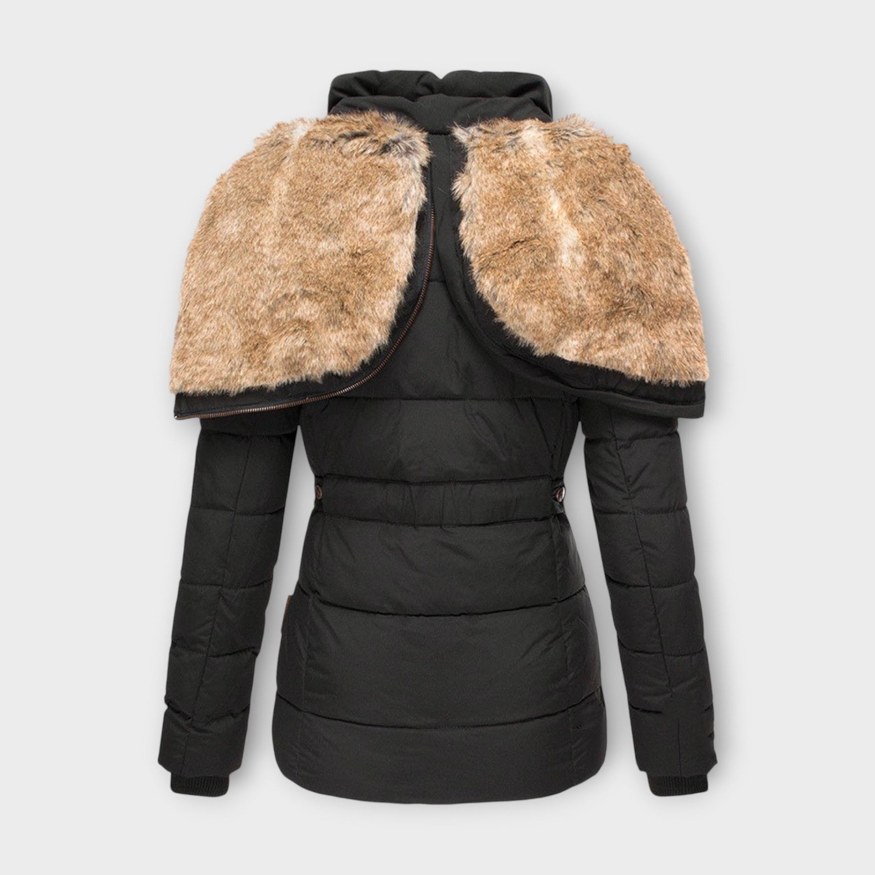 Obkroži se z neustavljivim udobjem z bundom Emine, ki združuje eleganco z maksimalnim udobjem. Zaradi tople krzneno podloge te bo obdržala v toplini tudi v najhladnejših dneh in hkrati dodala tvojemu videzu sofisticiran pridih. Popolna izbira za sprehode po mestu in elegantne večerne priložnosti.