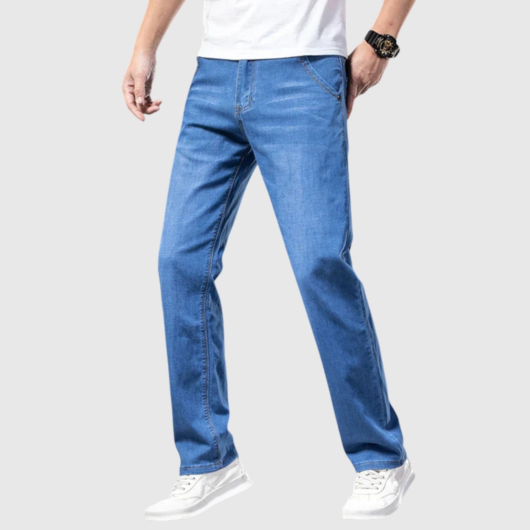 Kavbojke Casual Straight Denim so bile zasnovane za moške, ki cenijo preprost in klasičen videz. Narejene iz vrhunskega denima, ponujajo strukturiran, a udoben kroj, ki je idealen za vsakodnevno nošenje - ne glede na to, ali jih nosite formalno ali ohlapno.