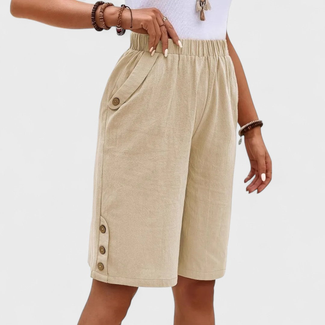 Hlače Signe združujejo mehak, zračen material z lahkotnim krojem, ki se prilagodi vašim potrebam - idealne za vroče dni, piknik v parku ali sprostitev doma. Zaradi elastičnega pasu ostanejo trdno na svojem mestu, ne da bi omejevale gibanje.
