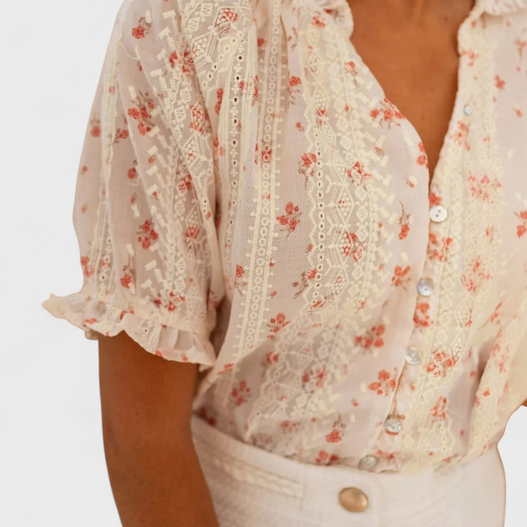 Bluzo Barbora osveži vaš garderobo z romantičnim cvetličnim potiskom v nežnih pastelnih odtenkih. Zračen material zagotavlja udobje tudi v vročih dneh, medtem ko kroj z daljšo dolžino daje nekoliko elegantno silhueto. Odlična izbira za prosti čas, kavo s prijatelji in lahke delovne outfite.