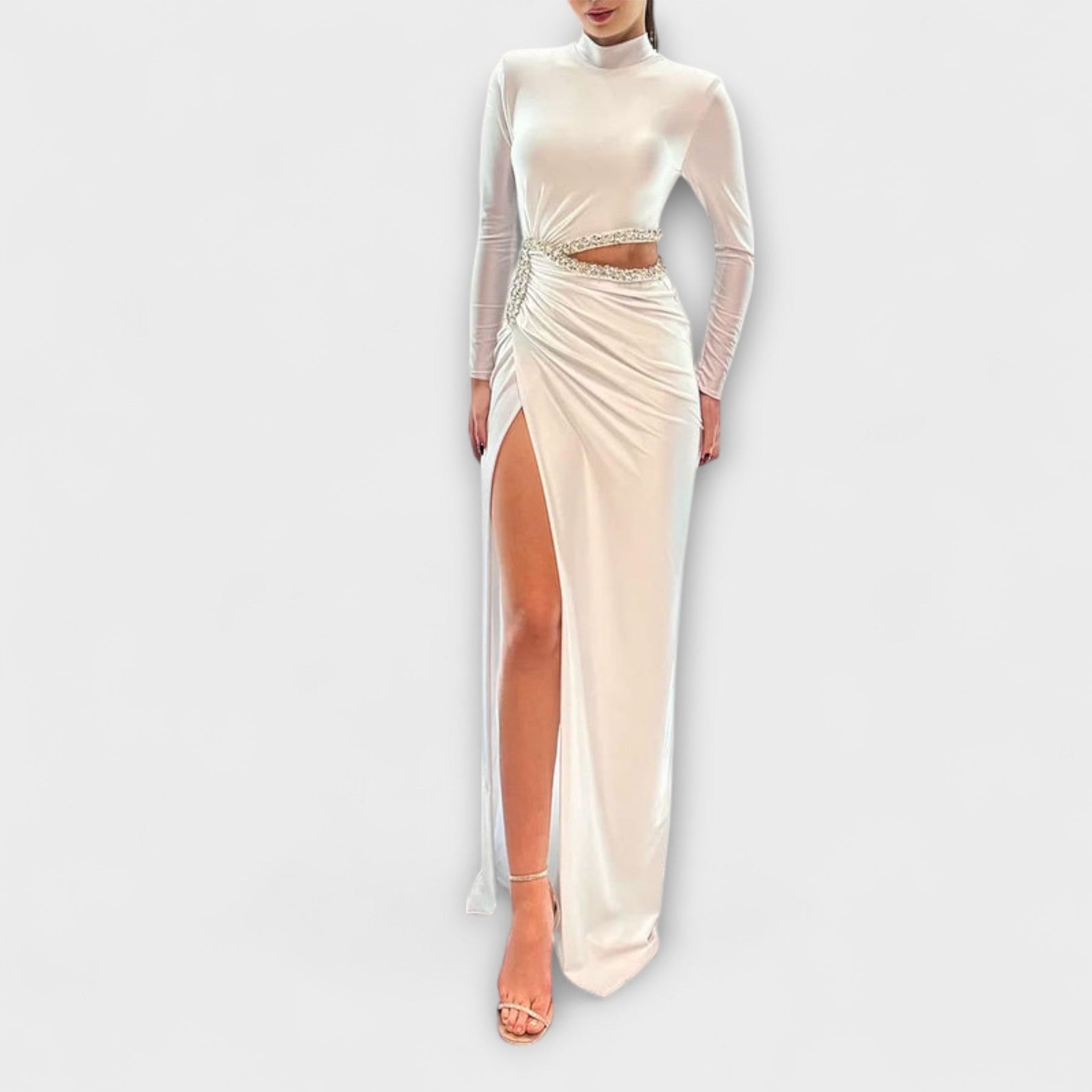 Selah - Bele obleke z dolgimi rokavi in izrezom v pasu z akcenti iz kamenčkov