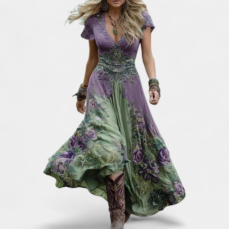 Obleka Celestine združuje naravno eleganco z brezskrbnim čarom. Lahka padajoča tkanina, nežni vezeni detajli in oblikovan korzet ustvarjajo silhueto, ki se giba z milostjo in samozavestjo. So idealna izbira za zunanje praznovanja, sprehode po naravi ali romantične trenutke pod odprtim nebom.