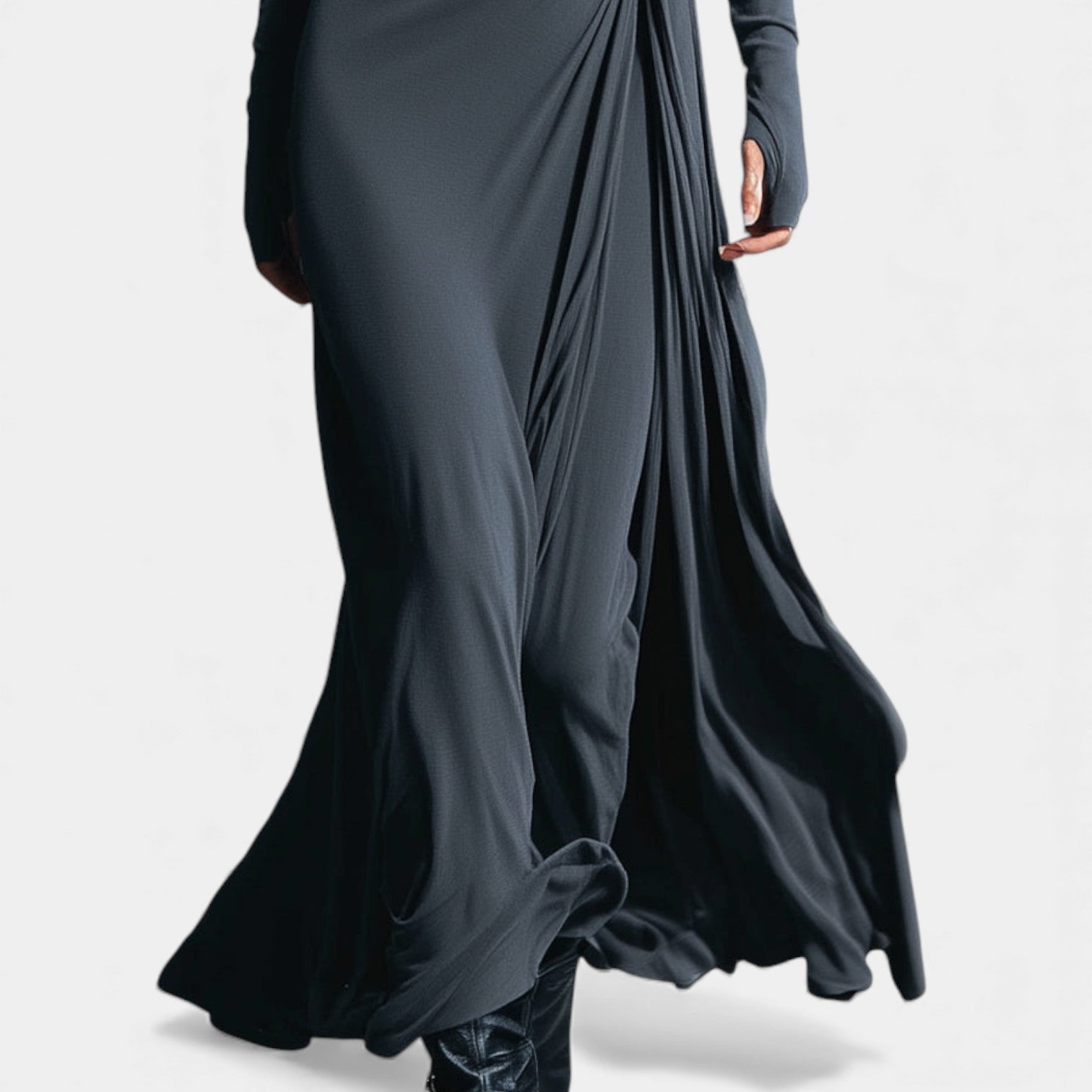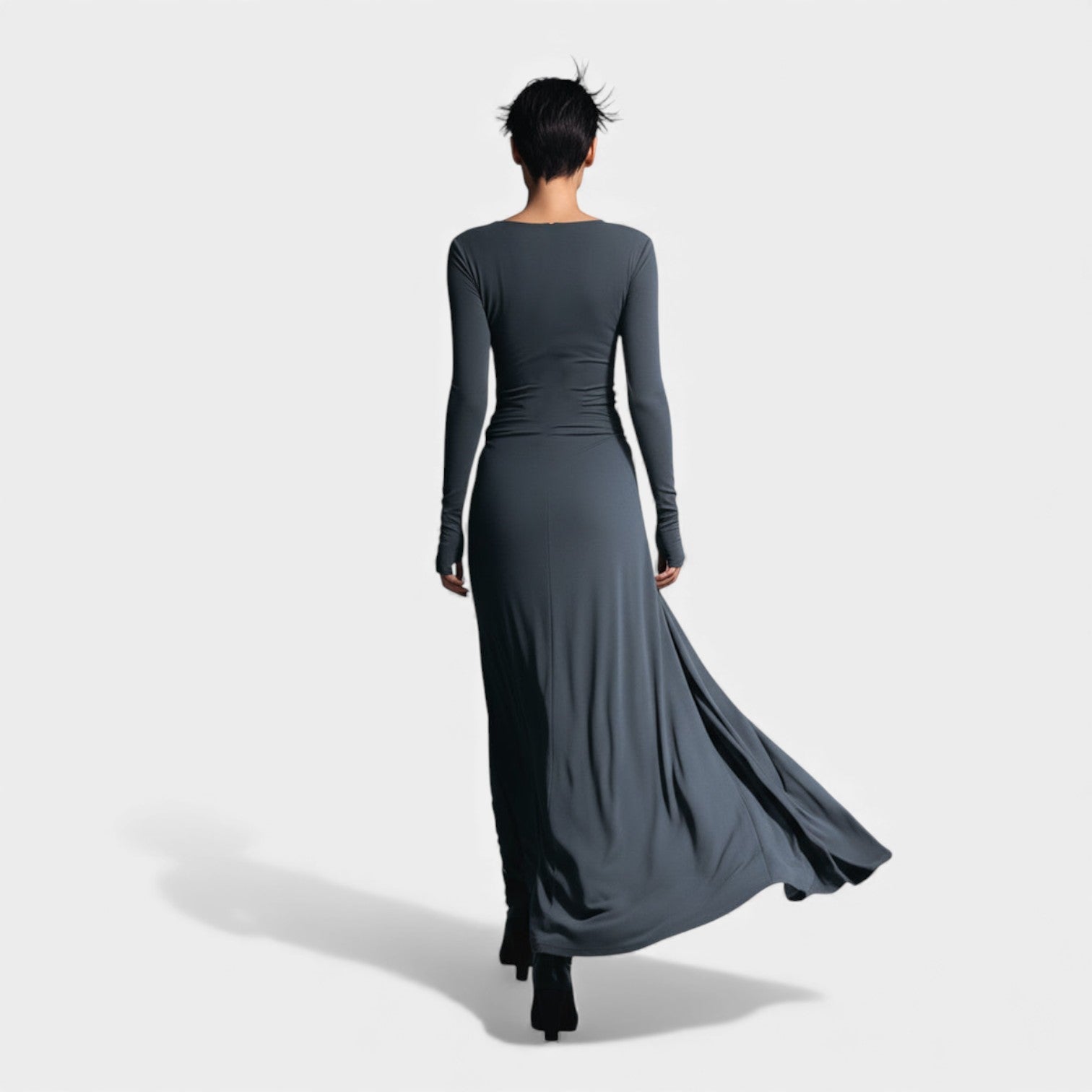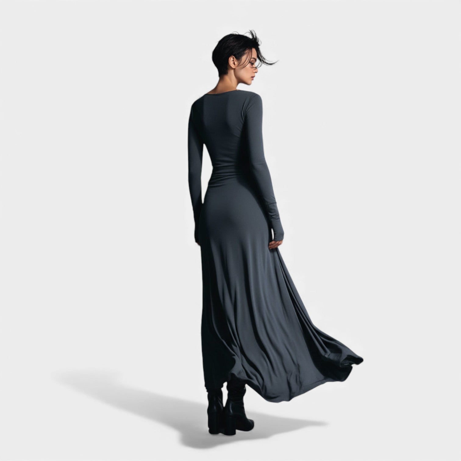 Obleka Anna je zasnovana za ženske, ki ljubijo kombinacijo klase, udobja in kroja, ki nežno oblikuje silhueto. Mehka, elastična tkanina prijetno ovije telo, medtem ko stransko vozlo z blagimi naborki ustvarja vizualni učinek podaljšanja — popolno za praznične srečanja, zimske proslave in vse trenutke, ko želite izgledati posebej prefinjeno in samozavestno. Njen lahek sijaj in brezčasna siva barva jo delata kos, ki se mu boste vračali celo sezono.