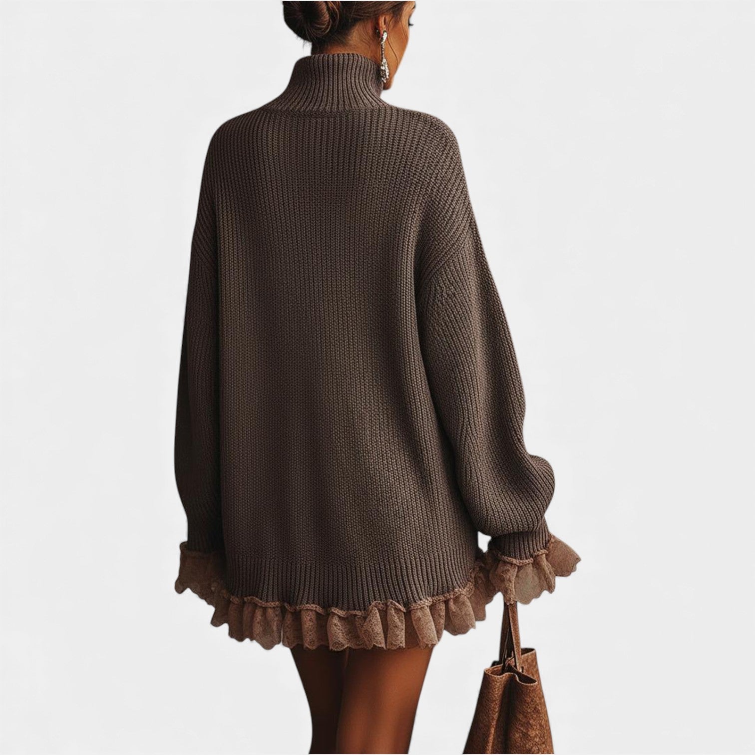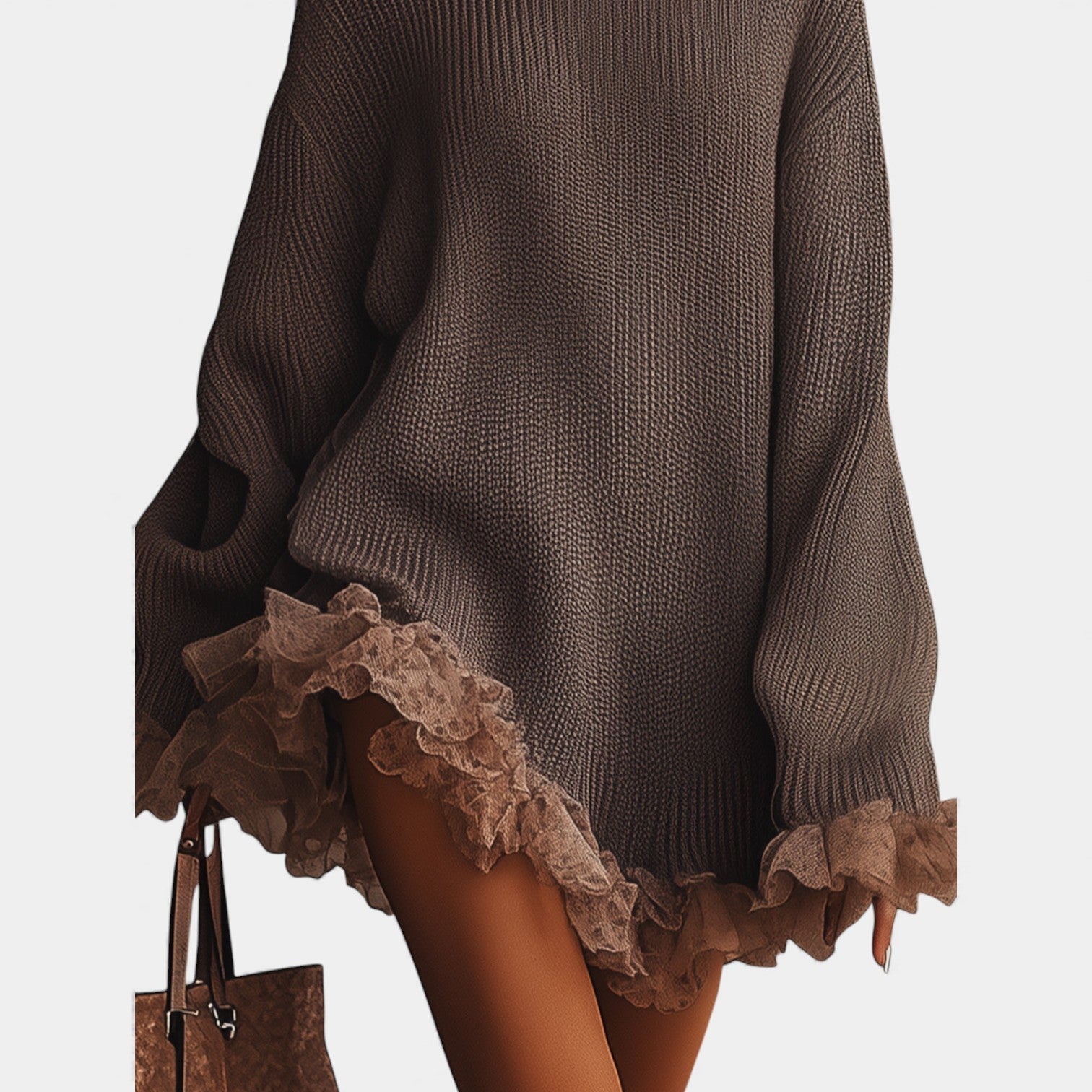Mila – Oversize pletena obleka z romantičnimi volančki