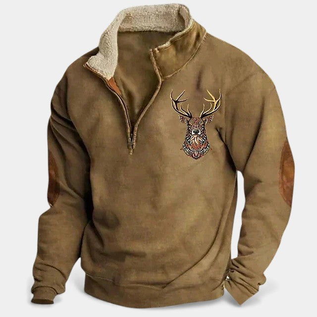 Lukáš – Moški pulover z jelenjim motivom in zadrgo pri vratu
