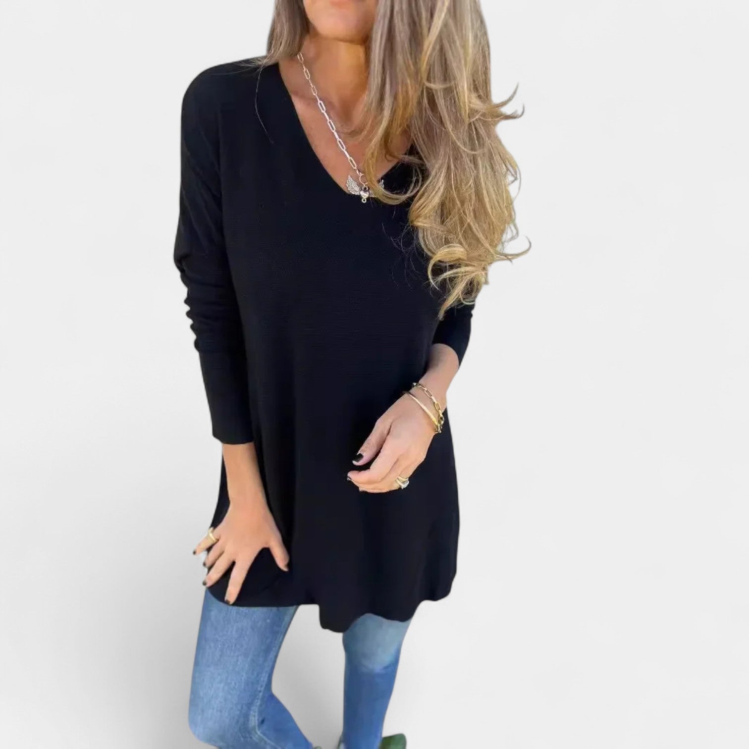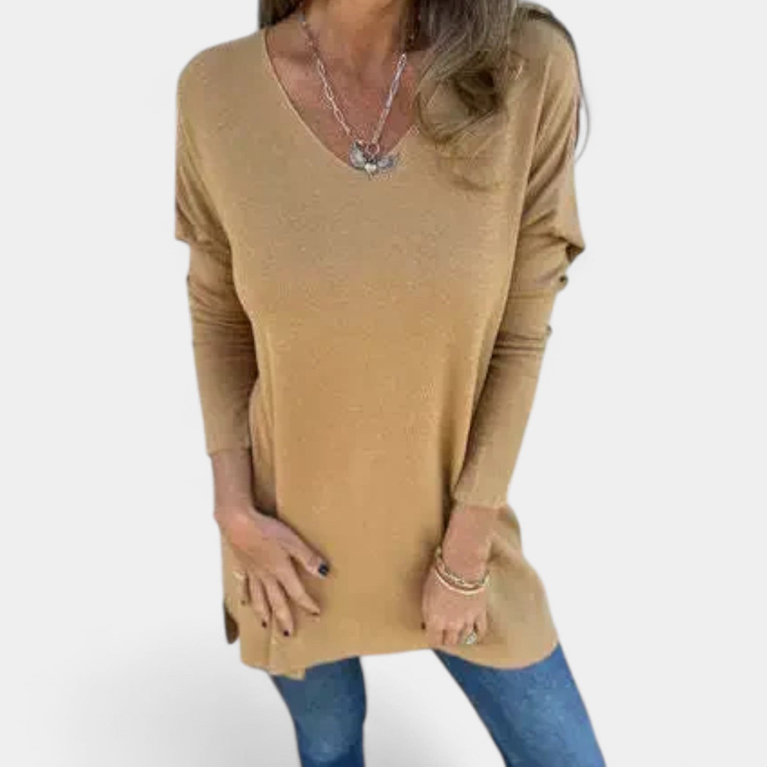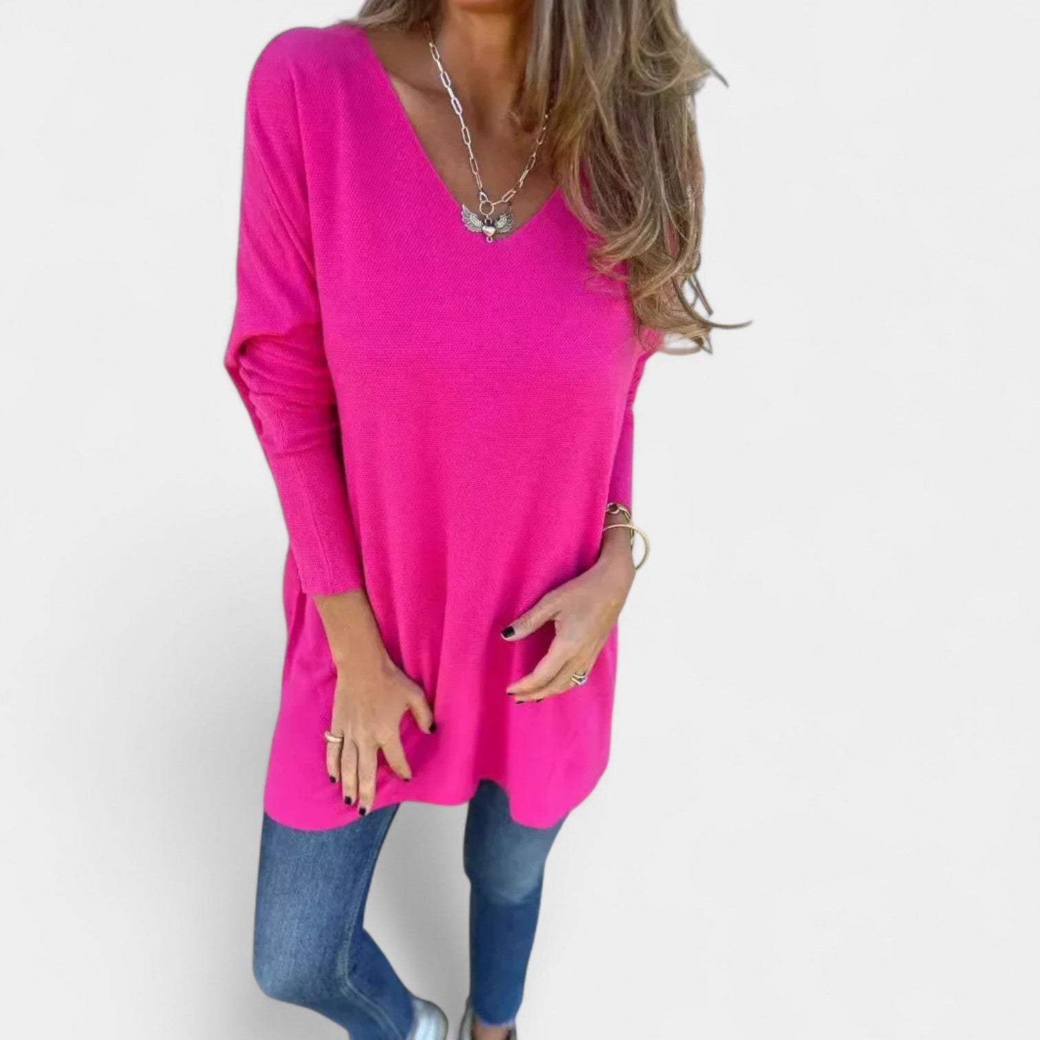 Leontýna – Ohlapna pletena tunika z V-izrezom